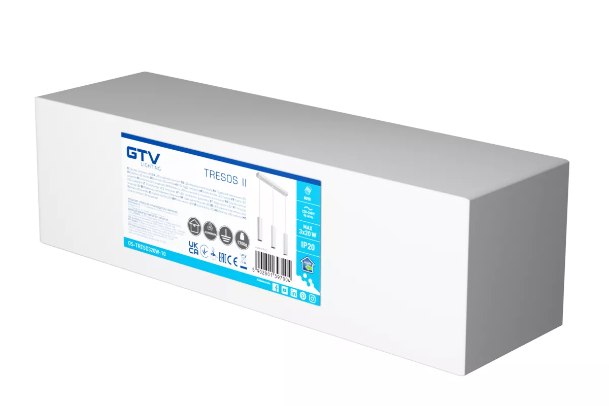 OPRAWA ZWIESZANA TRESOS II, max. 250V, 50/60Hz, 3xGU10, IP20, max. 3x20W, BIAŁA