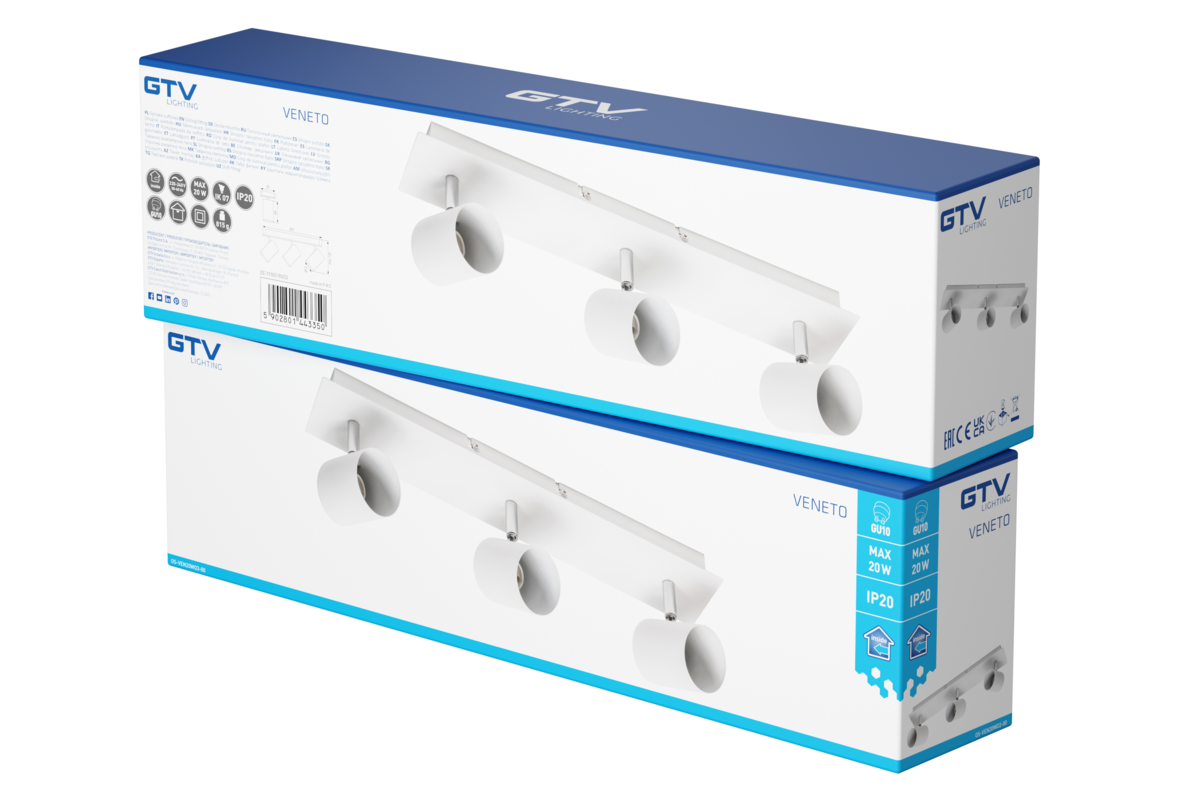 OPRAWA SUFITOWA VENETO, IP20, max. 20W, 3 x GU10, OKRĄGŁA, BIAŁA