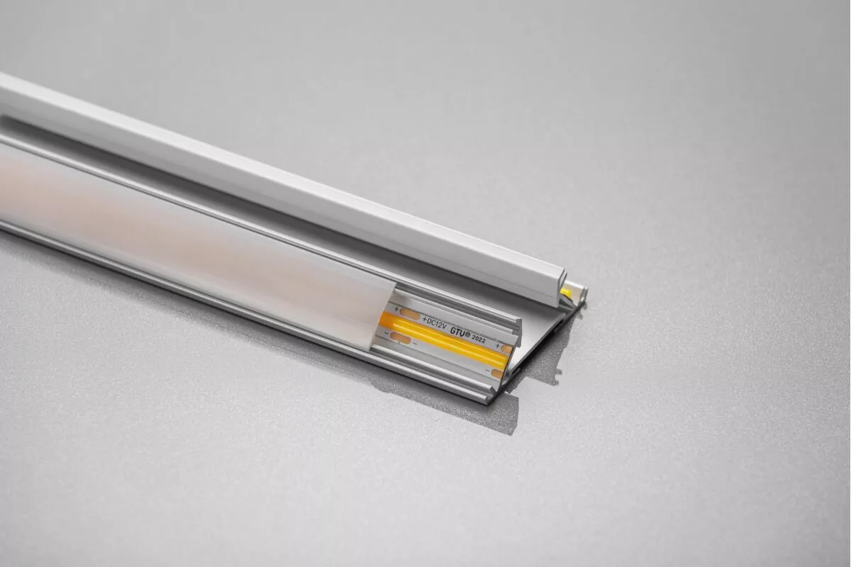 PROFIL ALUMINIOWY LED KĄTOWY - NABIJANY, DWUSTRONNY (DO WYPEŁNIEŃ OBRZEZEM) GLAX SILVER L= 3007 mm