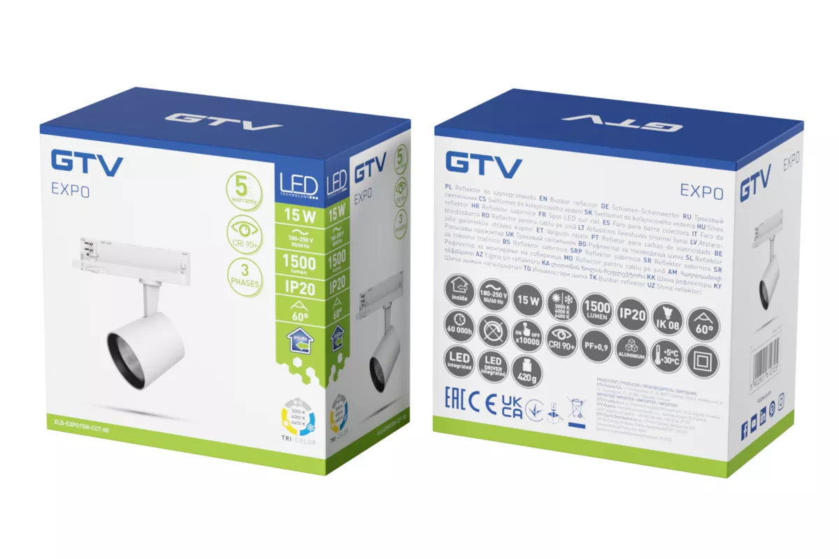 REFLEKTOR EXPO DO SZYNOPRZEWODU, LED, 15W, 1500lm, CCT, AC180-250V, 60°, CRI90+, BIAŁY
