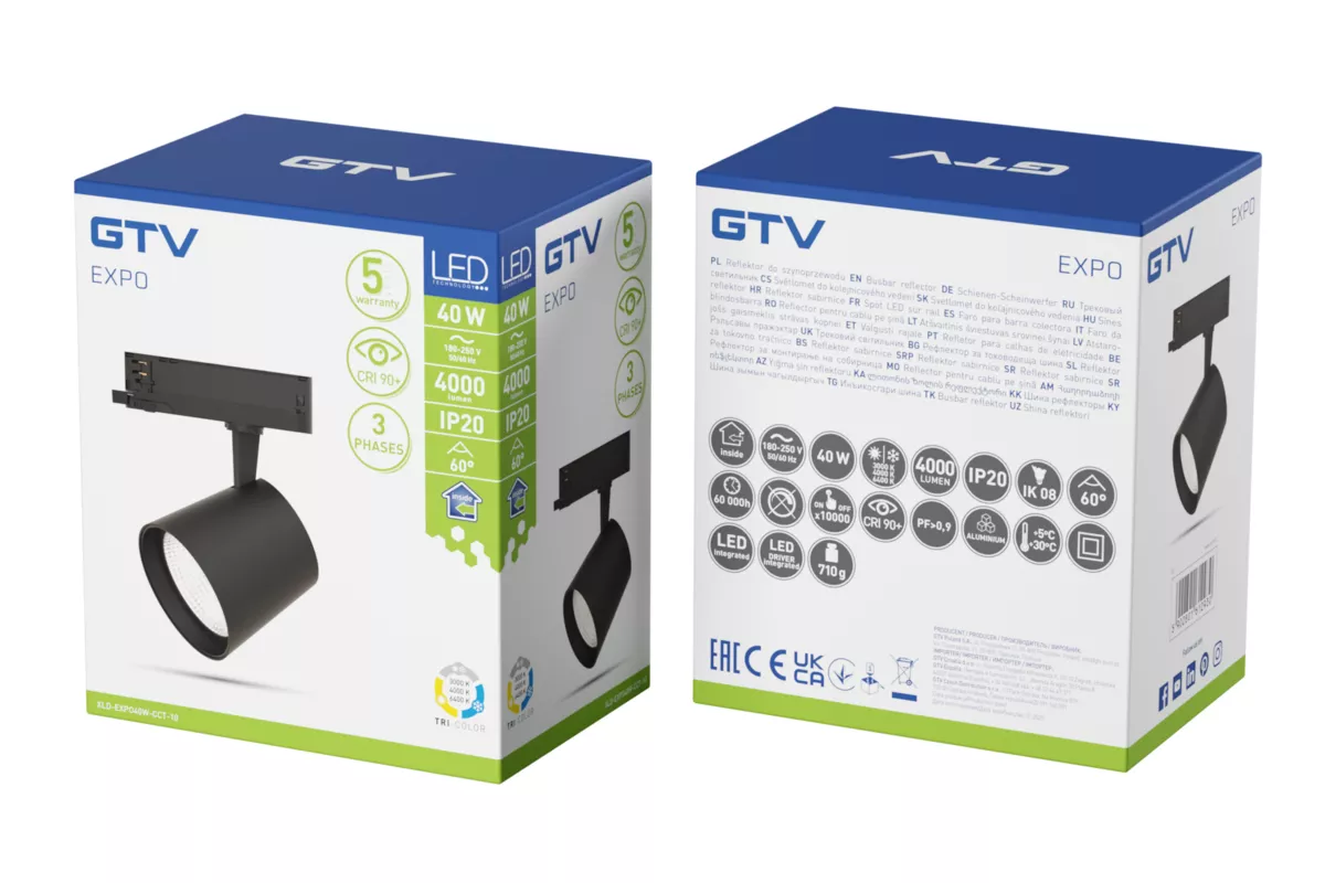REFLEKTOR EXPO DO SZYNOPRZEWODU, LED, 40W, 4000lm, CCT, AC180-250V, 60°, CRI90+, CZARNY