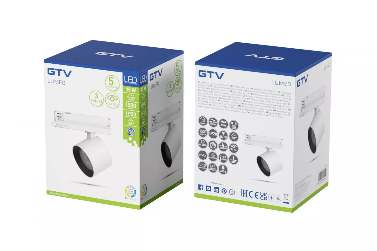 REFLEKTOR LUMEO DO SZYNOPRZEWODU, LED, 15W, 1500lm, CCT, AC180-250V, 50°, CRI90+, BIAŁY