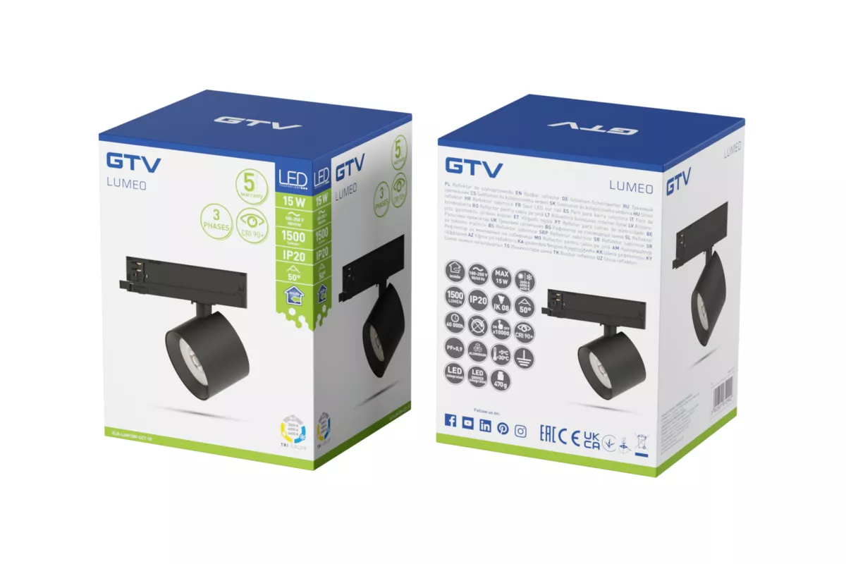 REFLEKTOR LUMEO DO SZYNOPRZEWODU, LED, 15W, 1500lm, CCT, AC180-250V, 50°, CRI90+, CZARNY