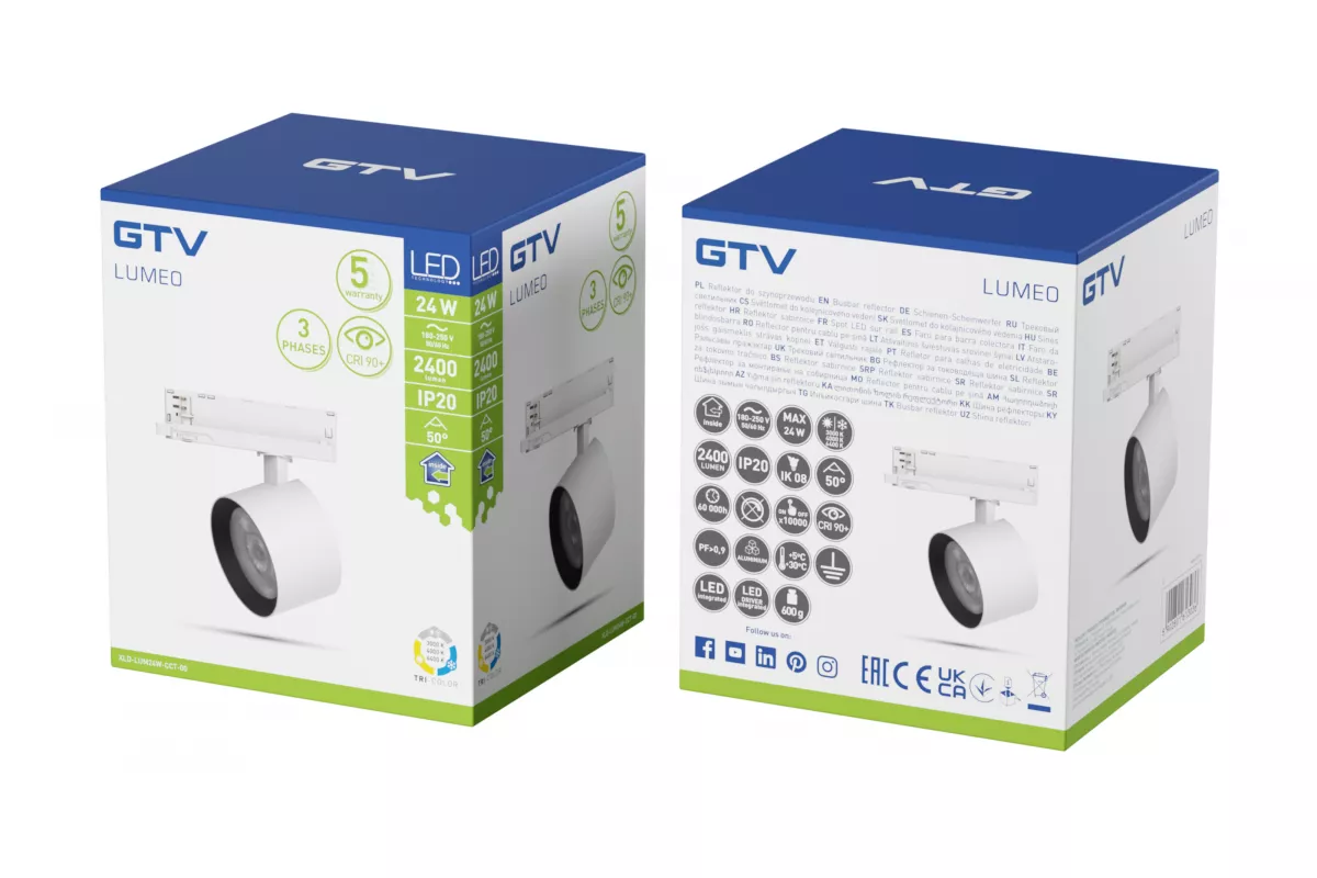 REFLEKTOR LUMEO DO SZYNOPRZEWODU, LED, 24W, 2400lm, CCT, AC180-250V, 50°, CRI90+, BIAŁY