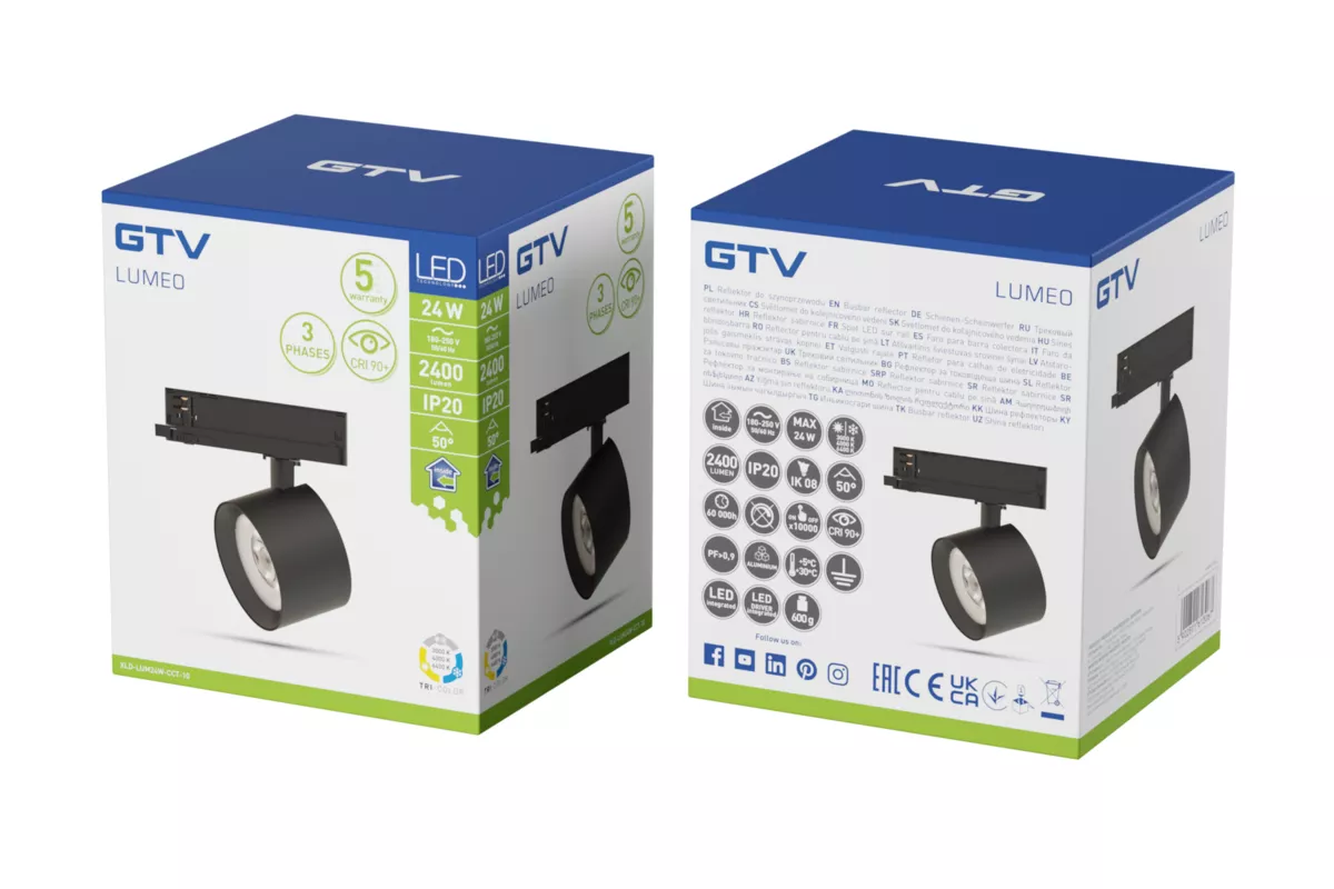 REFLEKTOR LUMEO DO SZYNOPRZEWODU, LED, 24W, 2400lm, CCT, AC180-250V, 50°, CRI90+, CZARNY