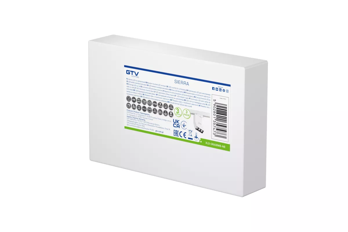 OPRAWA LED NA SZYNOPRZEWÓD SIERRA, 8W, 720lm, AC220-240V, 50/60 Hz, PF>0,5, Ra≥80, IP20, IK08, 4000K, 48°, BIAŁY