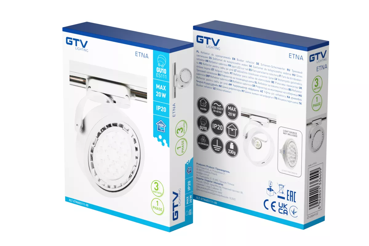 OPRAWA NA SZYNOPRZEWÓD 1-FAZOWY, ETNA, ES111, max.20W, AC220-240V, 50/60Hz, IP20, BIAŁA