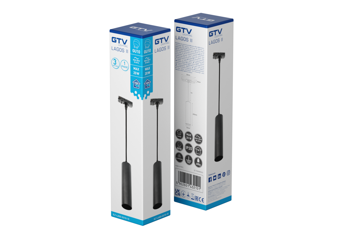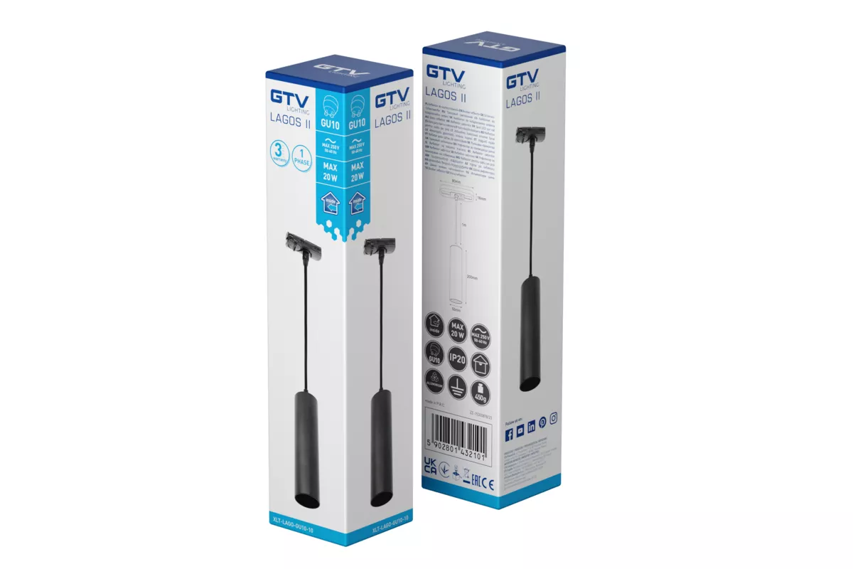 OPRAWA NA SZYNOPRZEWÓD 1-FAZOWY, LAGOS II, max. 250V, 50/60Hz, GU10, IP20, max. 20W, CZARNA