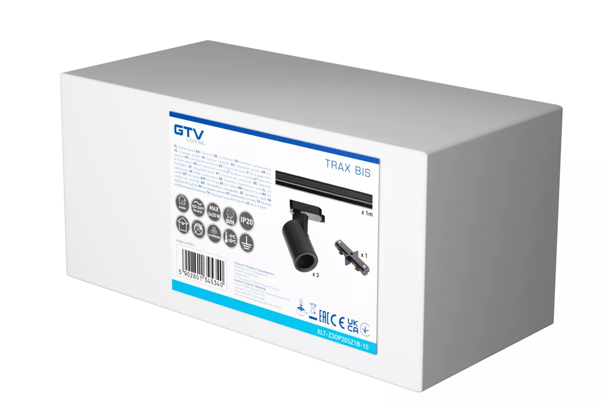 ZESTAW TRAX BIS, 3 OPRAWY NA SZYNOPRZEWÓD 1-FAZOWY, 1m, 3xGU10, max. 3x20W, AC220-240V, CZARNY