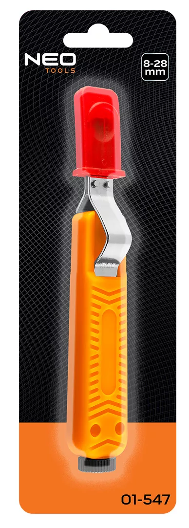 Ściągacz izolacji z hakiem 01-547 marki NEO TOOLS to narzędzie z hakiem do przewodów w zakresie od 8 do 28 mm2. Jego długość wynosi 180 mm. Korpus ściągacza NEO TOOLS wykonany został z trwałego tworzywa sztucznego. Narzędzie posiada docisk wysuwany przewodu. Jego waga 100 g sprawia, że ściągacz jest lekki i poręczny. Nakładka na ostrze wpływa na bezpieczeństwo jego przechowywania. Ściągacz do izolacji NEO TOOLS to wyposażony w hak produkt, który sprawdzi się w wielu trudnych zadaniach związanych z pracami elektrycznymi.