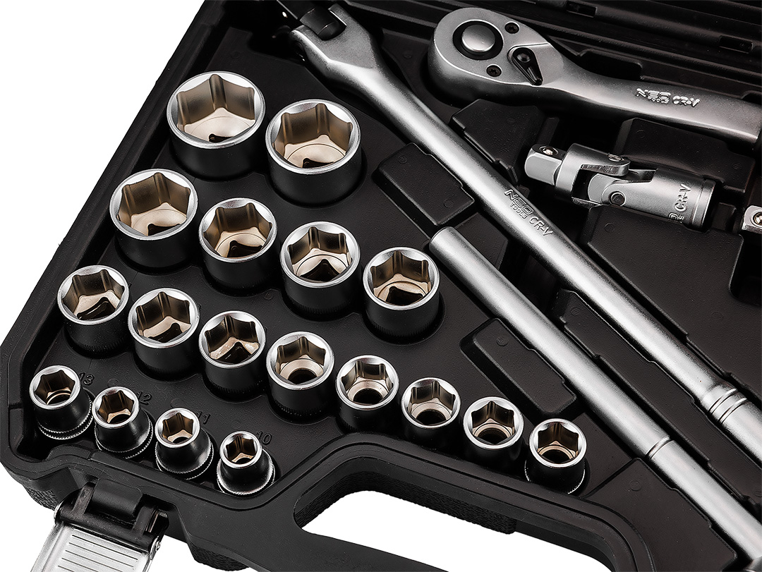 Zestaw kluczy nasadowych 1/2", 25 szt., satynowy
