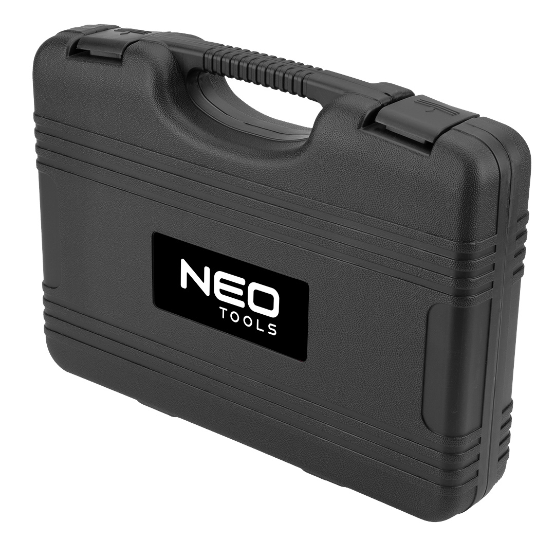 Separatory do zacisków hamulców – zestaw 35 szt. NEO to profesjonalny zestaw przeznaczony dla profesjonalnych warsztatów i serwisów samochodowych. Zestaw służy do łatwego demontażu tłoczków hamulcowych, zacisków wkręcanych oraz wciskanych. Całość jest zapakowana w walizkę, gdzie każdy element ma swoje miejsce, co ułatwia zachowanie porządku. Zestaw zawiera: 2 pokrętła (lewy i prawy gwint), 4 płyty oporowe, 24 adaptery do tłoczków, klucze sześciokątne 6 i 7 mm, wybijaki 3 i 5 mm oraz smar do prowadnic.