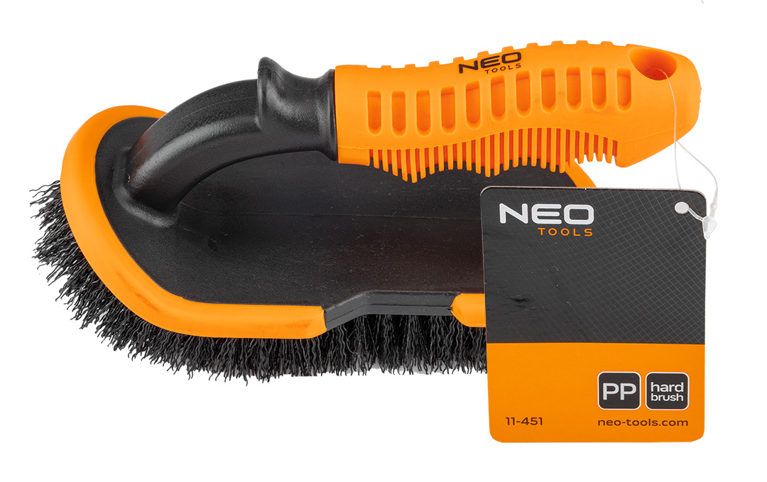 Uniwersalna szczotka do opon, tapicerki 11-451 marki NEO TOOLS o wymiarach 19 × 10 × 9 cm, posiada włosie o długości 25 mm wykonane z tworzywa PP i charakteryzujące się średnią twardością. Uchwyt również wykonano z trwałego tworzywa PP. Szczotka NEO TOOLS jest odporna na działanie środków chemicznych. Przeznaczona do czyszczenia opon, tapicerki, dywaników i innych powierzchni.