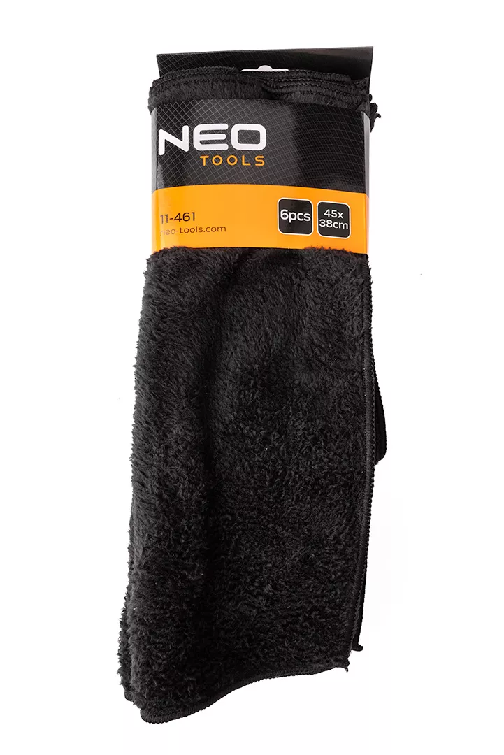 Zestaw ściereczek z mikrofibry 6 szt. 11-461 marki NEO TOOLS to zestaw zawierający 6 sztuk praktycznych ściereczek. Każda ściereczka ma wymiary 45 × 38 cm i wykonana jest w 100% z mikrofibry poliestrowej. Gramatura materiału wynosi 220 g/m². Ściereczki NEO TOOLS mają uniwersalne zastosowanie - mogą być używane do aplikacji środków czyszczących, wycierania zabrudzonych rąk czy też czyszczenia narzędzi oraz różnych powierzchni. Sprawdzą się w wielu sytuacjach.