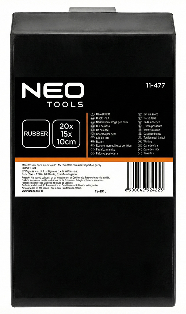 Gumowy klin pod koło z uchwytem 11-477 marki NEO TOOLS przeznaczony jest do zabezpieczenia pojazdu przed stoczeniem oraz jego unieruchomienia. Produkt ma wymiary 20 x 15 x 10 cm i wykonany został z gumy z recyklingu, zapewniając wytrzymałość oraz odporność na obciążenia. Klin posiada antypoślizgową powierzchnię, która zwiększa stabilizację pojazdu i pewne oparcie dla koła. Zastosowany uchwyt ułatwia przenoszenie oraz ustawienie go w odpowiednim miejscu. Produkt od marki NEO TOOLS przeznaczony jest do pojazdów osobowych i dostawczych - sprawdzi się podczas prac naprawczych oraz serwisowych, zwiększając bezpieczeństwo użytkownika.