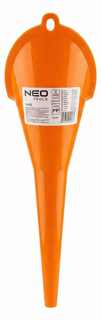 Lejek z długą szyjką 282 mm 11-557 marki NEO TOOLS przeznaczony jest do nalewania płynów w trudno dostępne miejsca. Produkt wykonany z polipropylenu, ma długość 282 mm oraz średnicę wlewki 76 mm. Stożkowy kształt lejka umożliwia dopasowanie do węższych i szerszych otworów, a długa i wąska szyjka ułatwia dostęp do głębiej umiejscowionych zbiorników lub wlewów - w tym do baków paliwa. Lejek NEO TOOLS wyposażony jest w uchwyt do powieszenia, ułatwiający jego przechowywanie. Narzędzie przeznaczone do nalewania olejów, płynów chłodniczych, płynów do spryskiwaczy oraz innych cieczy, zapewniając precyzyjne nalewanie i ograniczenie rozlewania podczas pracy.