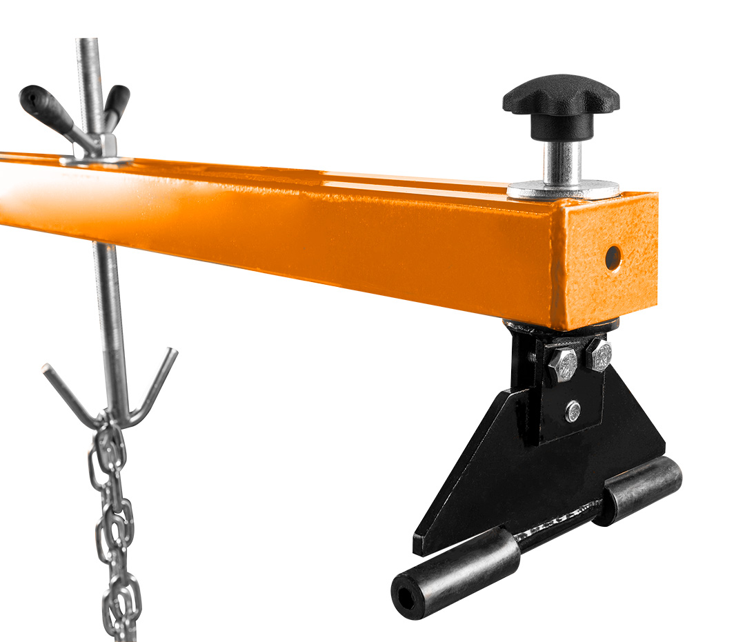 Wieszak na silnik, udźwig 500 kg 11-749 marki NEO to urządzenie charakteryzujące się rozstawem podpór od 730 do 1480 mm oraz zakresem podnoszenia od 0 do 205 mm. Przeznaczone jest do podwieszania silników i skrzyń biegów o masie do 500 kg. Wieszak marki NEO posiada regulowane podpory i zaczepy, umożliwiające dopasowanie do każdego samochodu. Dzięki wykonaniu konstrukcji ze stali, charakteryzuje się trwałością na wiele lat użytkowania. Gumy na podporach zabezpieczają przed uszkodzeniami sprawiając, że produkt może być wykorzystywany także w przypadku samochodów o wyższej klasie. Wieszak na silnik ma wagę 20,5 kg, co jest gwarancją stabilności i bezpieczeństwa w jego użytkowaniu.