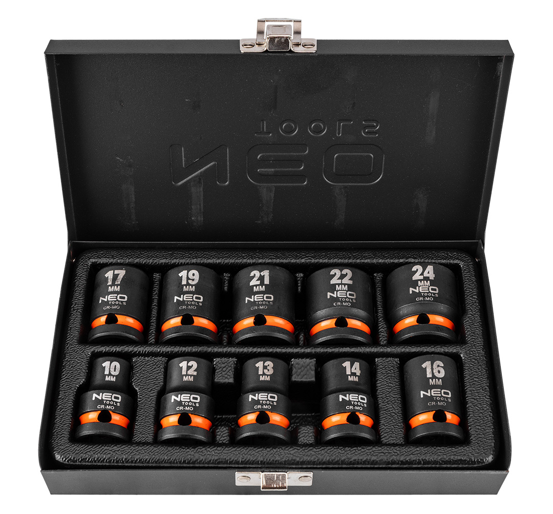 Nasadki udarowe 1/2", 10-24 mm, zestaw 10 szt.
