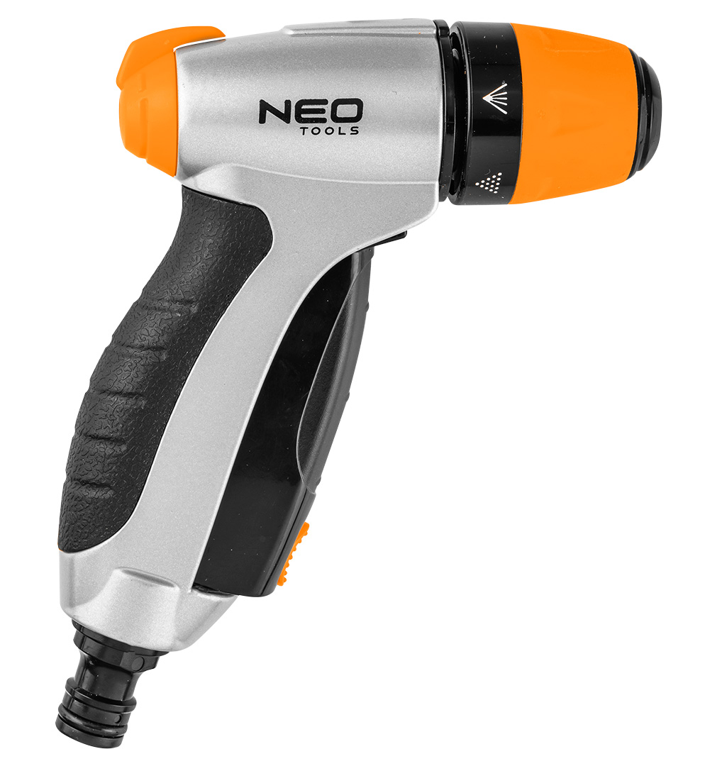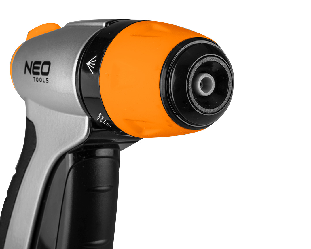 Zraszacz pistoletowy z blokadą NEO (nr ref. 15-705) przeznaczony jest do nawadniania m.in. trawników. Wyposażony jest w 3 funkcje podlewania, które pozwalają dopasować rodzaje strumienia do potrzeb: silny strumień punktowy, mgiełka, prysznic. Pistolet posiada blokadę przedniej dźwigni dzięki czemu może pracować w trybie ciągłym. Uchwyt o ergonomicznym kształcie dobrze leży w dłoni i nie wyślizguje się, co podnosi komfort pracy.