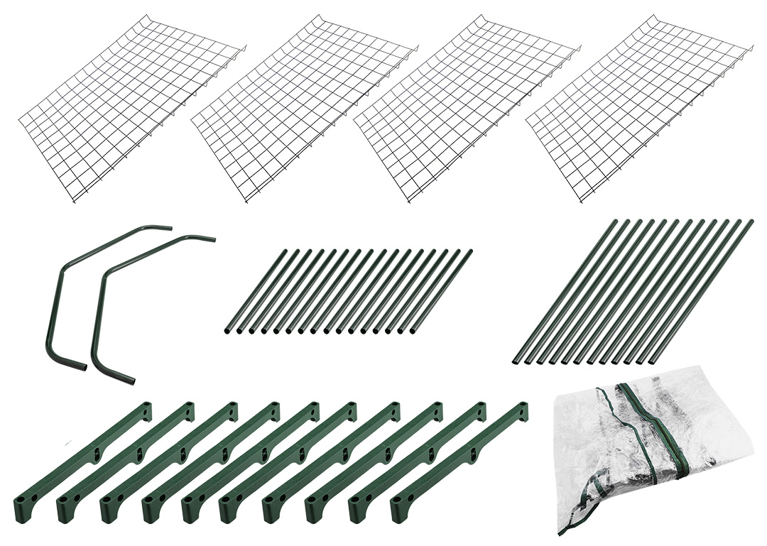 Szklarnia 69 x 49 x 160 cm, folia PVC, składana, metalowa konstrukcja malowana proszkowo; łatwy montaż, zamykana na zamek błyskawiczny, możliwość podwinięcia frontu szklarni, otwór frontowy o wymiarach 49 x 138 cm, 4 półki