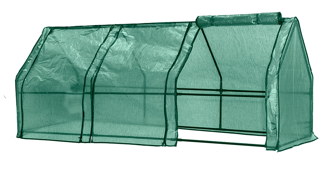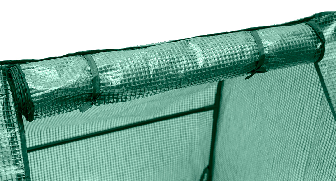 Szklarnia 240 x 90 x 90 cm, folia PE 135 g, składana, metalowa konstrukcja malowana proszkowo, łatwy montaż, możliwość podwinięcia bocznych otworów szklarni, 3 otwory boczne zamykane na zamek błyskawiczny, wymiar bocznego otworu: 65 x 110 cm.