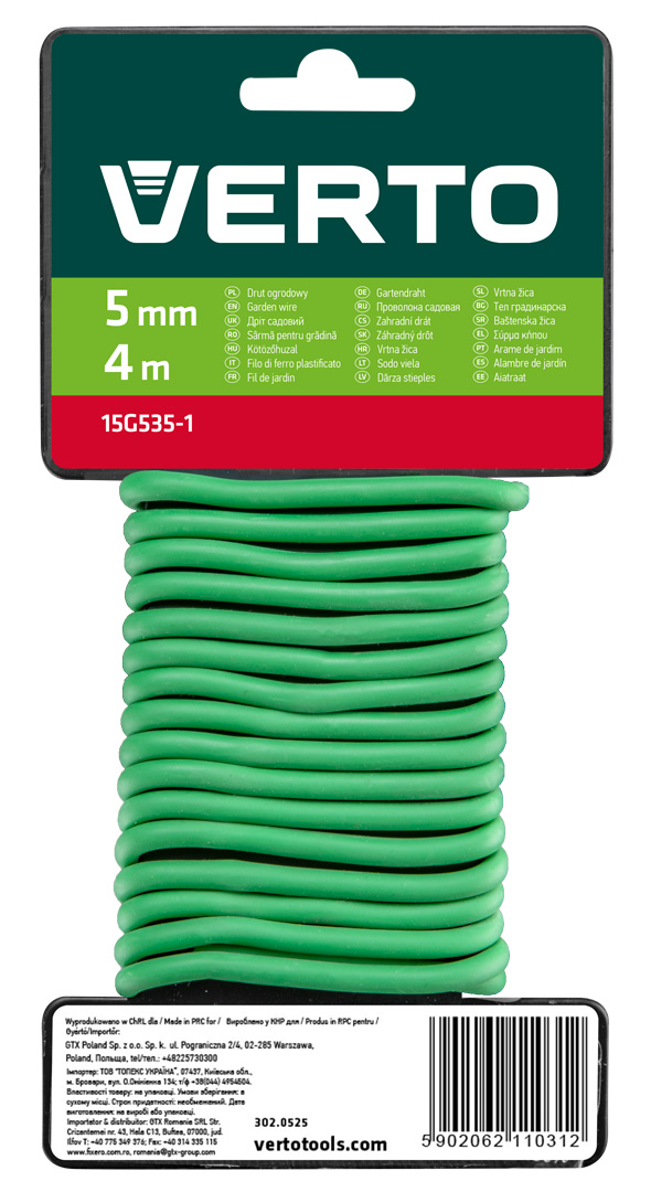 Drut ogrodowy 5 mm, 4 m 15G535-1 marki VERTO to praktyczne akcesorium ogrodnicze przeznaczone do podwiązywania delikatnych roślin, takich jak młode pędy, krzewy ozdobne czy łodygi warzyw. Dzięki grubej otulinie z elastycznego PVC drut zapewnia skuteczną ochronę przed uszkodzeniem roślin, jednocześnie zachowując odpowiednią sztywność i elastyczność. Jest odporny na działanie wilgoci, promieniowania UV oraz zmienne warunki atmosferyczne, co czyni go niezawodnym narzędziem zarówno w ogrodach przydomowych, jak i w szklarni. Odpowiedni do wielokrotnego użytku i łatwy do przycinania na potrzebną długość.