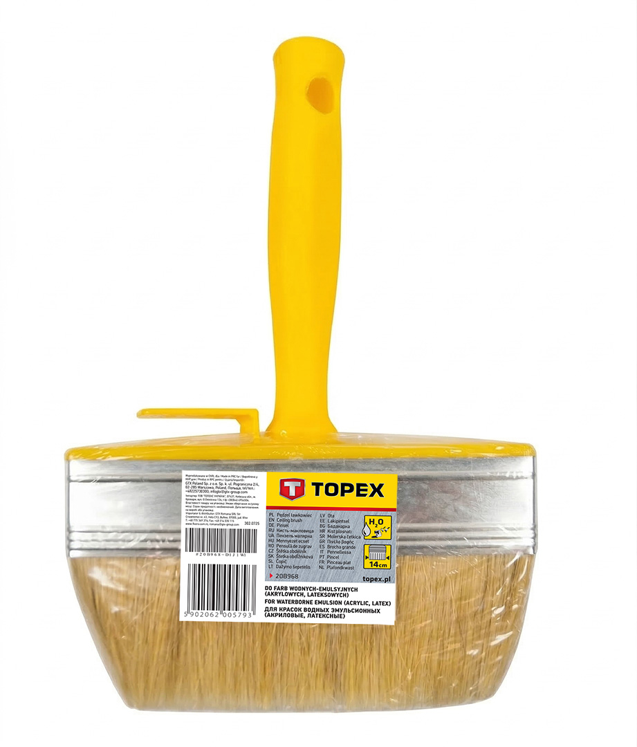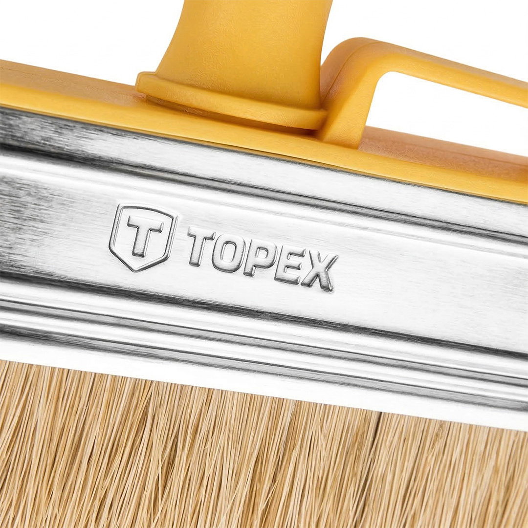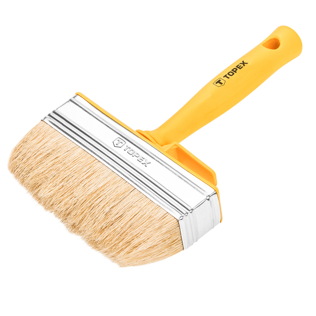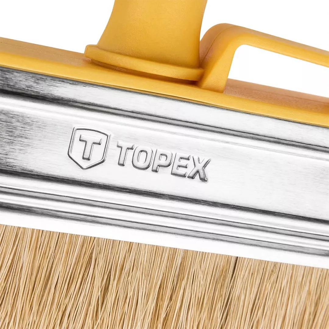 Pędzel ławkowiec plastikowy 14 x 4 cm TOPEX (nr ref. 20B968) wykonany z włosia naturalnego. Charakteryzuje się szerokim zastosowaniem. Przeznaczony do malowania farbami emulsyjnymi, lateksowymi a także do bejcowania i farb akrylowych. Posiada wygodny i praktyczny uchwyt z tworzywa sztucznego oraz stalową skuwkę. Marka TOPEX skierowana jest do majsterkowiczów.