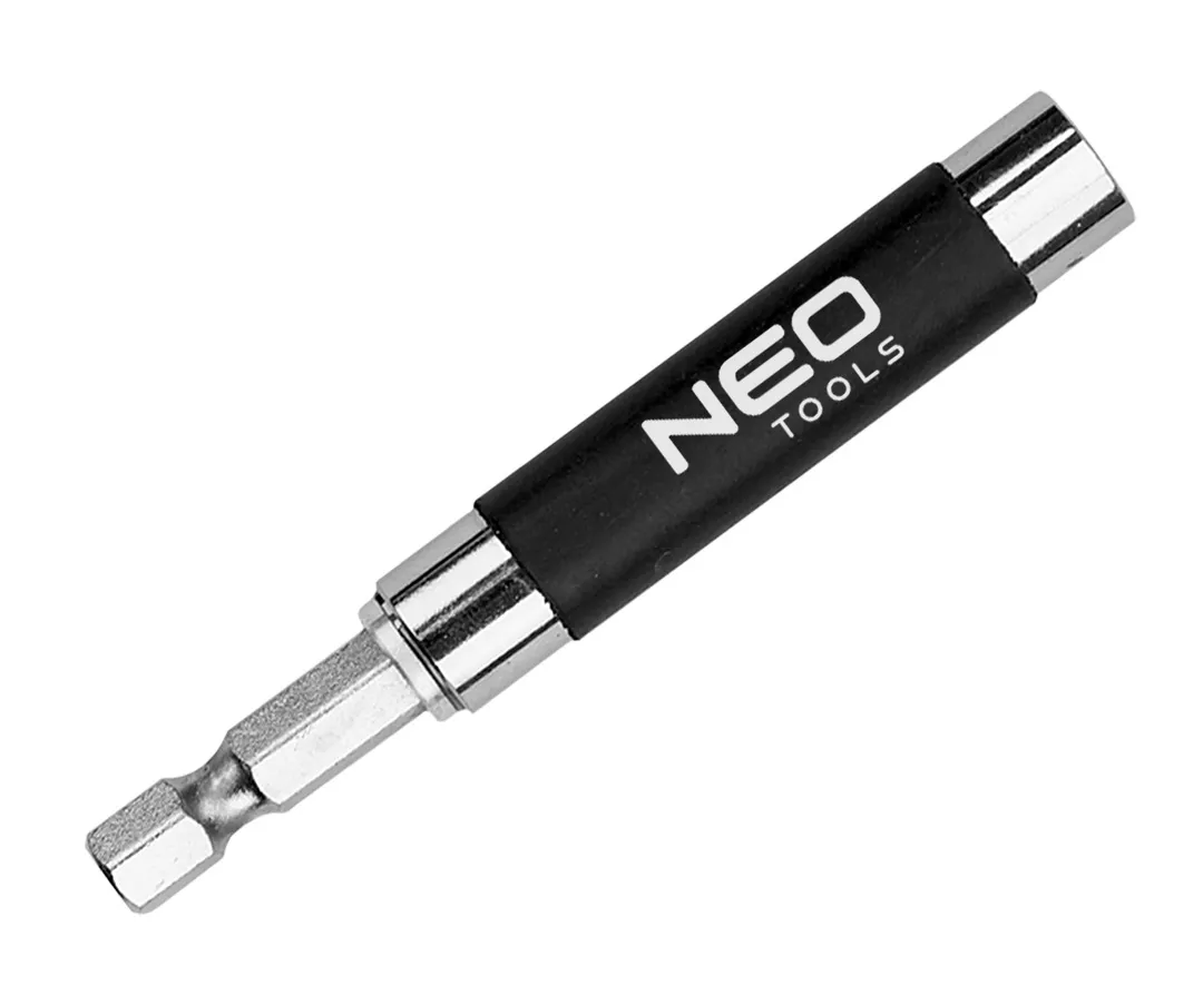 Uchwyt do końcówek, 1/4", 80 mm 39-341 marki NEO TOOLS to uchwyt w wykonaniu magnetycznym, przeznaczony do pracy z końcówkami wkrętakowymi o tym samym profilu. Konstrukcja uchwytu, łącząca kompaktową długość z magnetycznym zabezpieczeniem bitu, ułatwia precyzyjne prowadzenie oraz ogranicza ryzyko wypadania końcówki podczas montażu. Wersja ¼” HEX zapewnia zgodność wymiarową końcówki i gniazda, co przekłada się na pewne osadzenie i powtarzalność pracy.