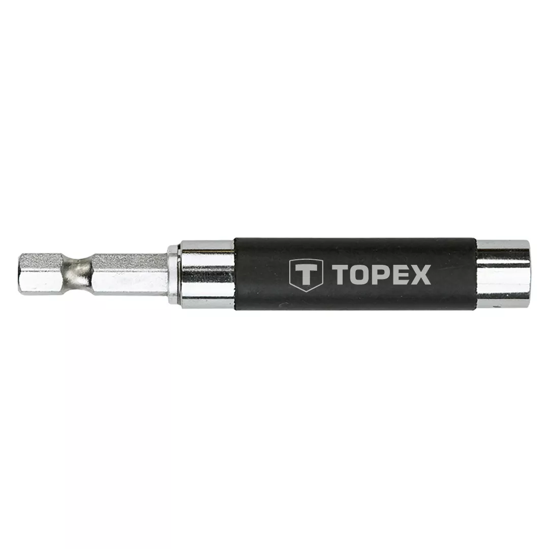 Uchwyt do końcówek TOPEX (nr ref. 39D337) o długości 80 mm przeznaczony do wkrętarek i wiertarko-wkrętarek z końcówką w rozmiarze 1/4”. Posiada mocowanie magnetyczne i prowadnicę. Marka TOPEX skierowana jest do majsterkowiczów.