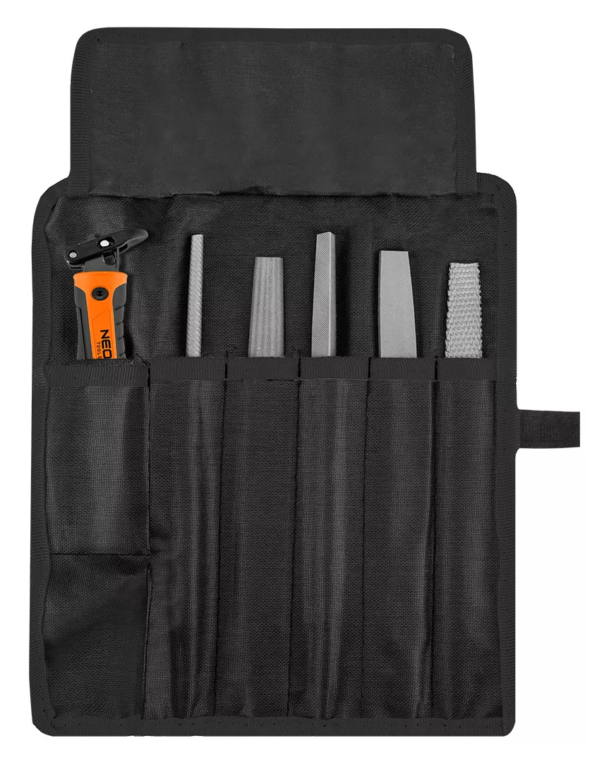 Uchwyt do pilników, zestaw 5+1, 44-652 marki NEO TOOLS to uniwersalne rozwiązanie kompatybilne z większością pilników dostępnych na rynku. Innowacyjna głowica z szybkozłączem obsługiwanym jednym przyciskiem umożliwia błyskawiczny montaż i wymianę osprzętu, a ergonomiczny, dwukomponentowy uchwyt zapewnia pewny chwyt oraz wysoki komfort pracy. W komplecie znajdują się 4 pilniki do metalu (płaski, półokrągły, okrągły, trójkątny) oraz 1 pilnik do drewna (płaski), co pozwala dobrać narzędzie do kształtu i rodzaju obrabianego materiału. Zestaw NEO TOOLS zawiera uchwyt, 5 wymiennych pilników oraz pokrowiec.