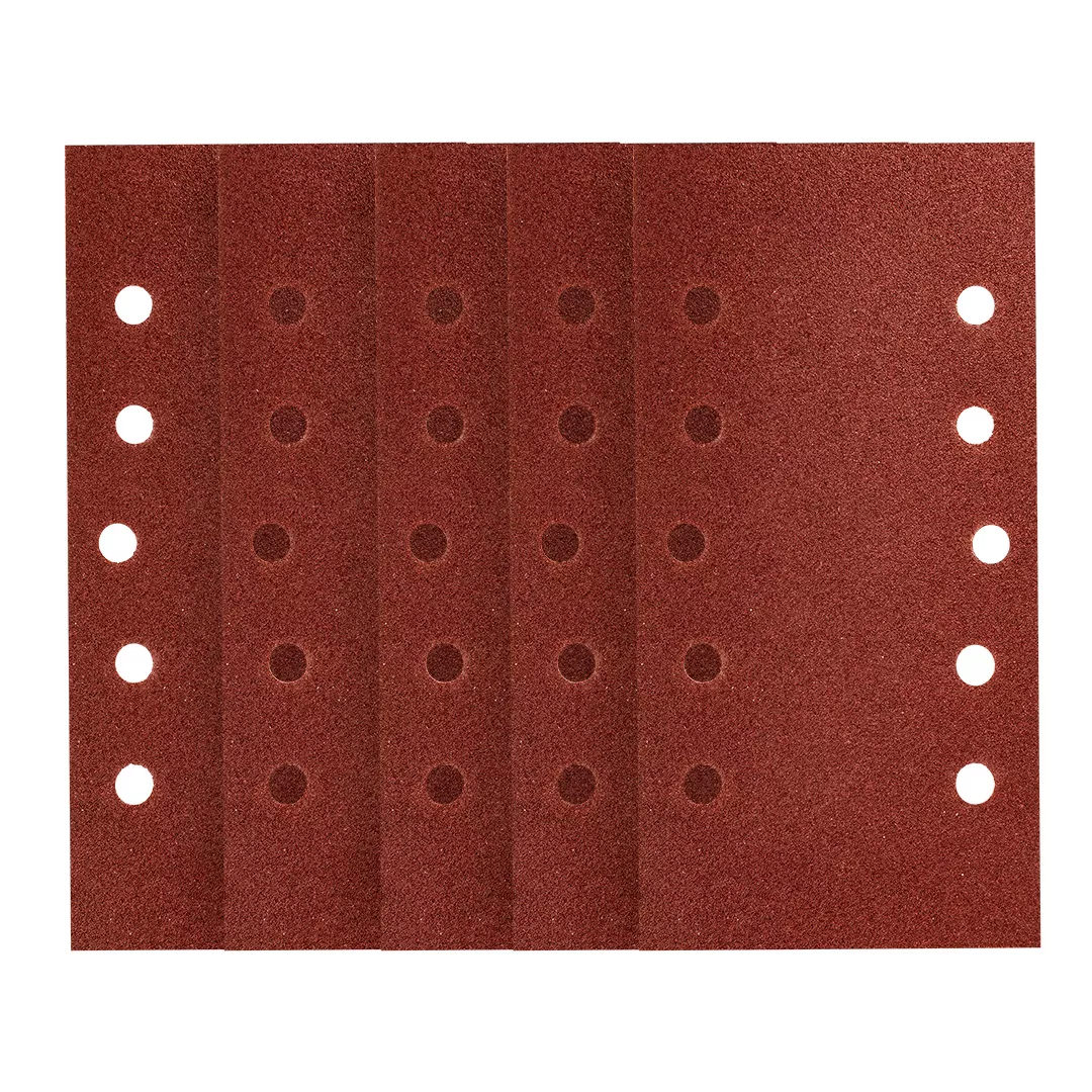 Papier ścierny na rzep 115 x 230 mm, P80, 5 szt., z 10 otworami, zastosowanie: do metalu, drewna, materiałów sztucznych