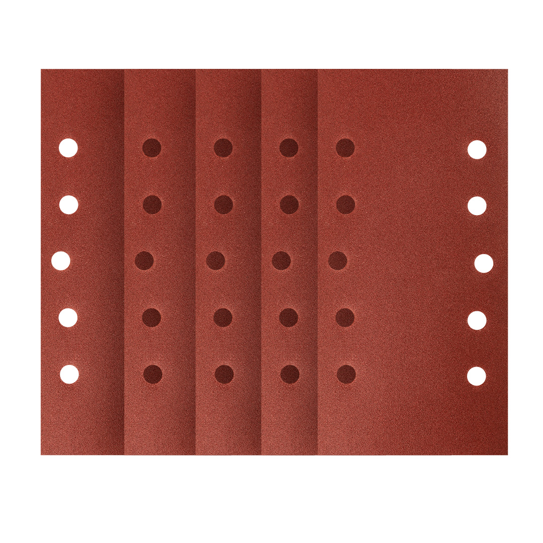 Papier ścierny na rzep 115 x 230 mm, P180, 5 szt., z 10 otworami, zastosowanie: do metalu, drewna, materiałów sztucznych
