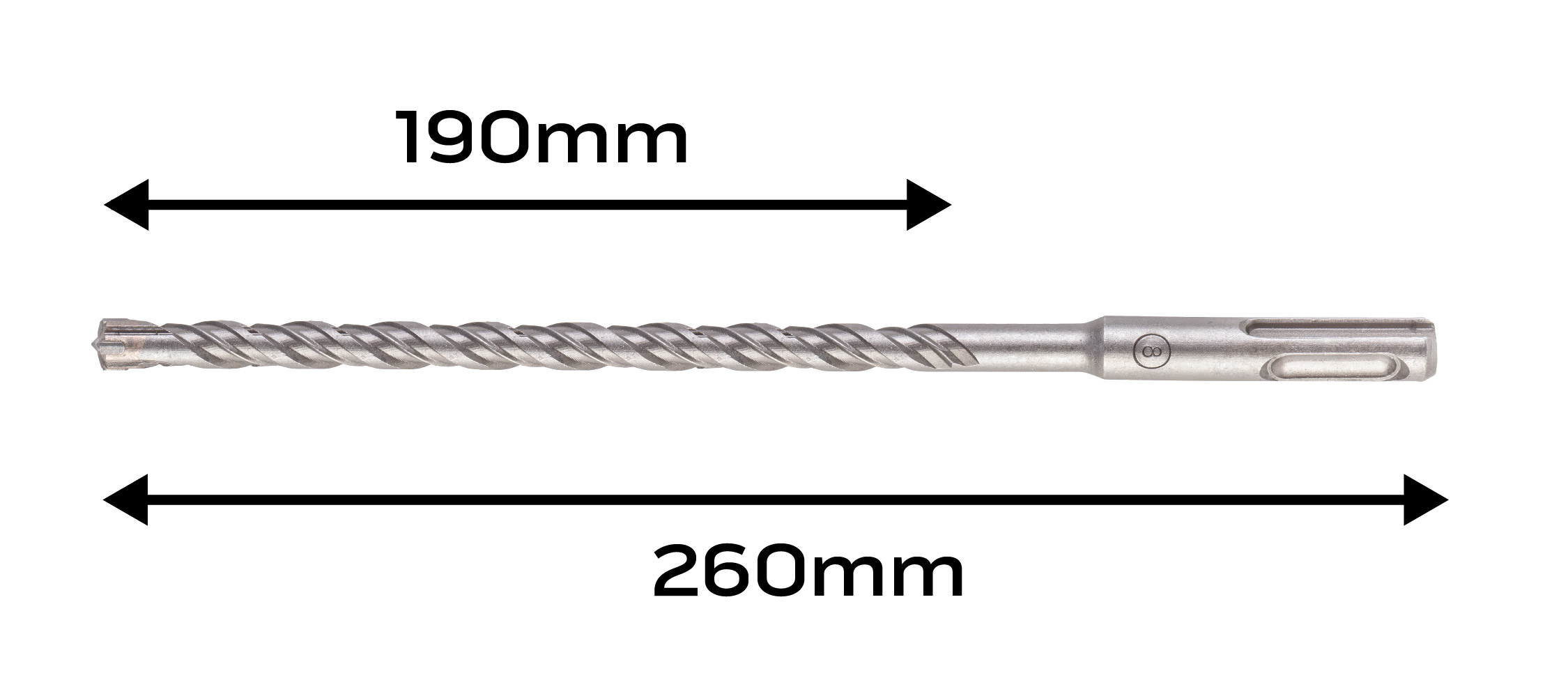 Wiertło do betonu zbrojonego SDS Plus 8 x 260 mm, quatro 54-106 marki NEO TOOLS to akcesorium charakteryzujące się średnicą 8 mm oraz długością całkowitą 260 mm i długością roboczą 190 mm. Wyposażone w uchwyt SDS Plus, podwójną spiralę oraz widia QUATRO (cztery krzyżowo osadzone widie) doskonale nadaje się do pracy w zbrojonym betonie. Krzyżowa końcówka wykonana została z drobnoziarnistego węglika spiekanego. To wytrzymałe narzędzie od marki NEO TOOLS polecane profesjonalistom do intensywnego użytkowania.