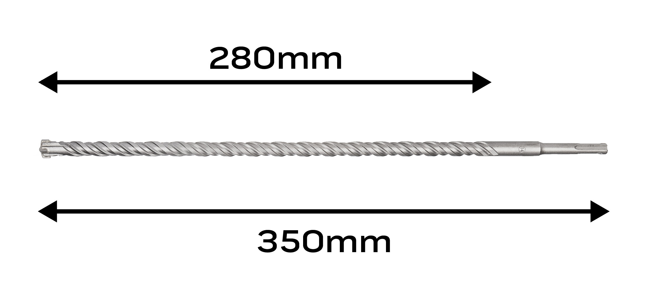 Wiertło do betonu zbrojonego SDS Plus 14 x 350 mm, quatro 54-127 marki NEO TOOLS to akcesorium charakteryzujące się średnicą 10 mm oraz długością całkowitą 350 mm i długością roboczą 280 mm. Wyposażone w uchwyt SDS Plus, podwójną spiralę oraz widia QUATRO (cztery krzyżowo osadzone widie) doskonale nadaje się do pracy w zbrojonym betonie. Krzyżowa końcówka wykonana została z drobnoziarnistego węglika spiekanego. To wytrzymałe narzędzie od marki NEO TOOLS polecane profesjonalistom do intensywnego użytkowania.