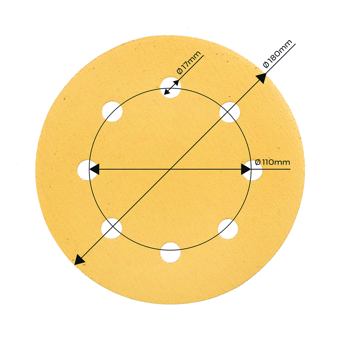 Papier ścierny na rzep 180 mm, K120, 5 szt., z 8 otworami do szlifierki 59G263