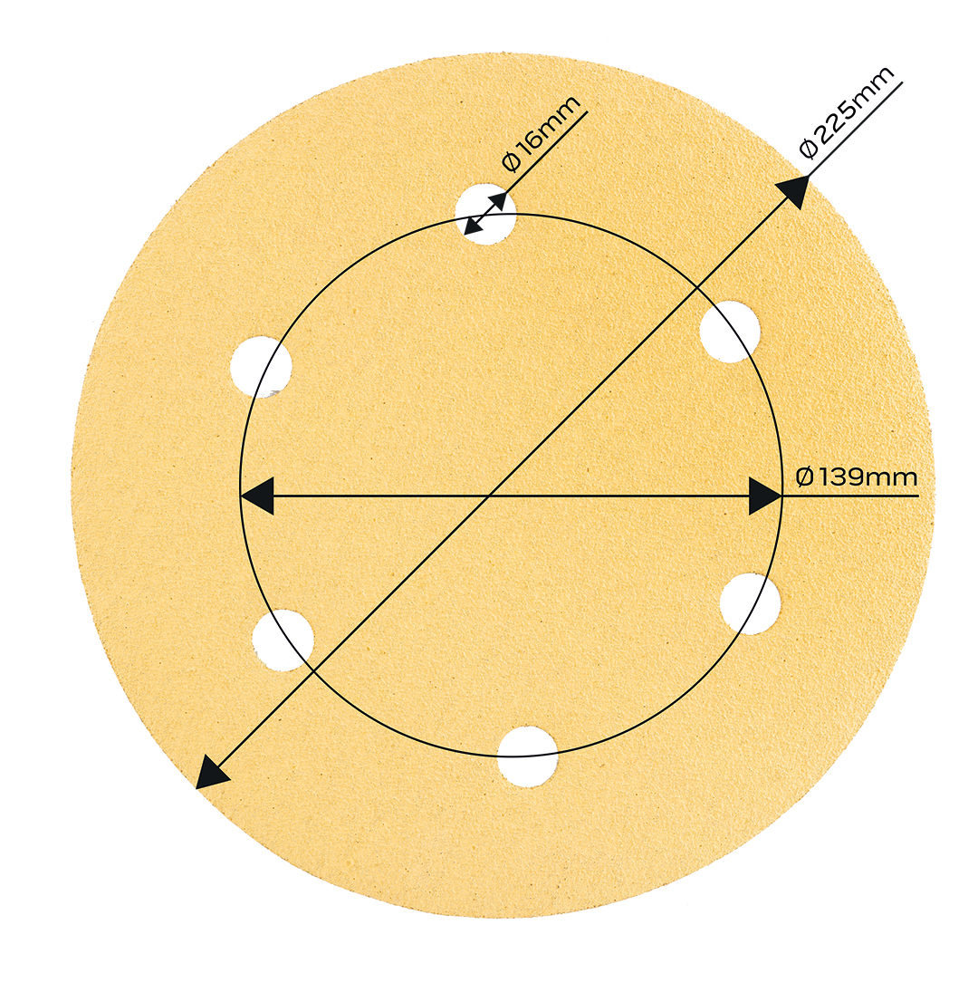 Papier ścierny na rzep 225 mm, K80, 5 szt., z 6 otworami do szlifierki 59G264, 59G265