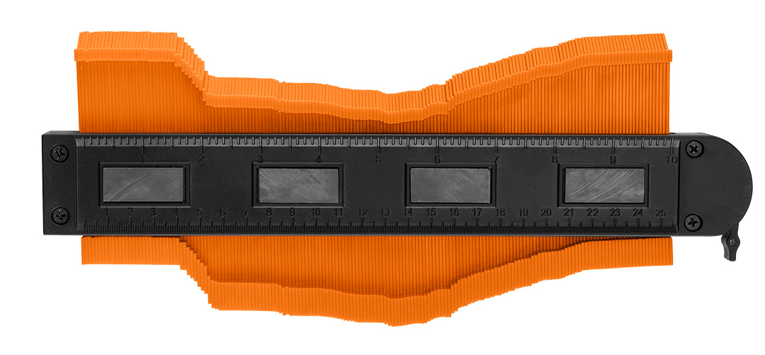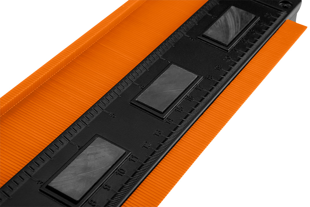 Szablon do odwzorowania kształtów 250 mm, z blokadą kształtu, materiał: metal, plastik, przeznaczony do odwzorowywania kształtów w trudnodostępnych miejscach, podziałka w centymetrach i calach