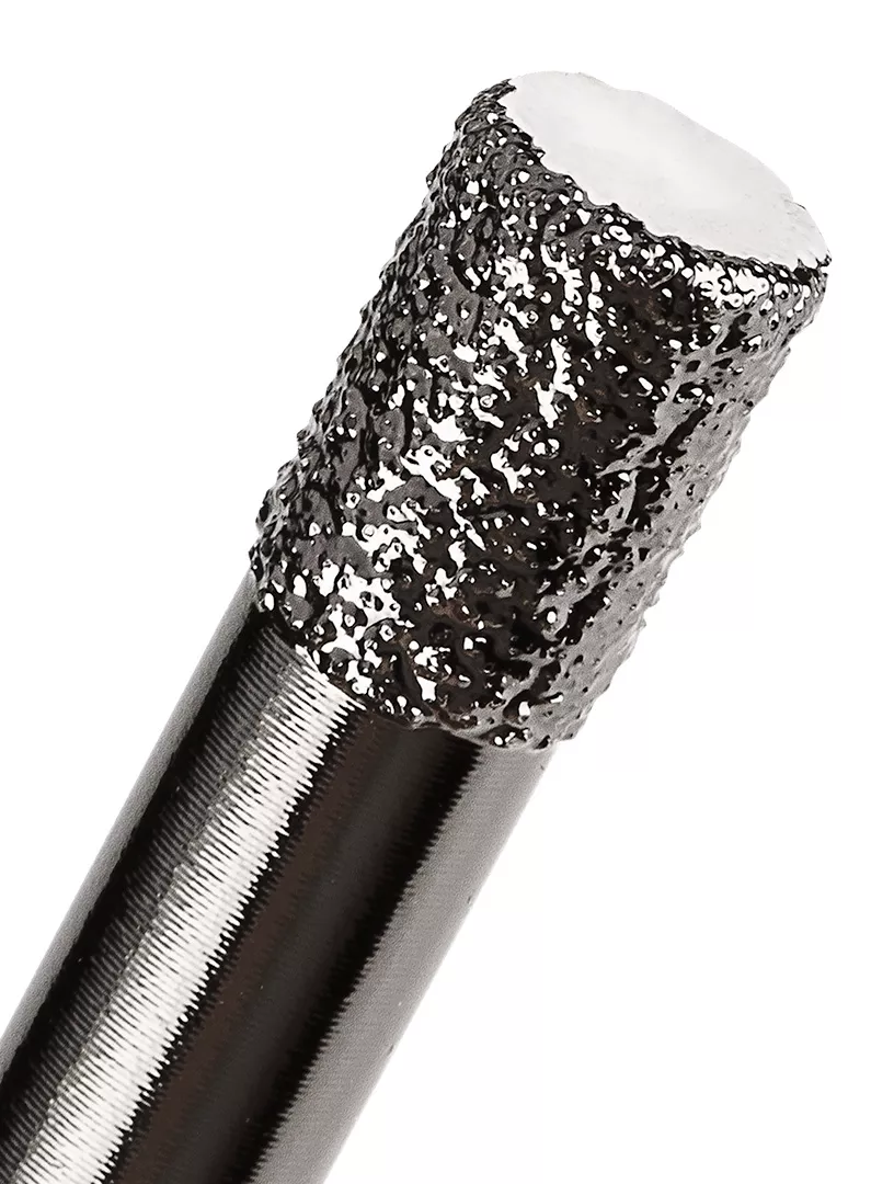 Otwornica diamentowa 8 mm x M14, 55-301 marki NEO TOOLS o średnicy 8 mm z gwintem M14 jest przeznaczona do pracy na sucho ze szlifierką kątową. Trwały nasyp diamentowy lutowany próżniowo (vacuum brazed) oraz wypełnienie parafiną zapewnia chłodzenie podczas wiercenia. Długość robocza wynosi 30 mm, a całkowita 60 mm, ułatwiając wiercenie typowych otworów montażowych. Maksymalna prędkość obrotowa to 11 000 obr./min. Zastosowanie obejmuje ceramikę, gres, kamień i beton.