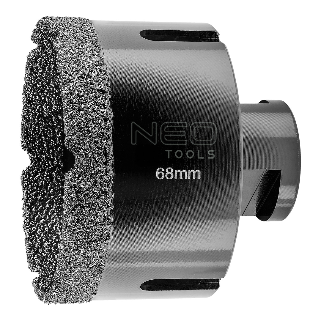 Otwornica diamentowa, średnica 68 mm, długość robocza 40 mm, długość całkowita 60 mm, nasyp diamentowy, gwint M14, lutowana próżniowo (vacuum brazed), do pracy na sucho, max. prędkość obrotowa 11 000 obr/min., zastosowanie: do ceramiki, gresu, kamienia, betonu