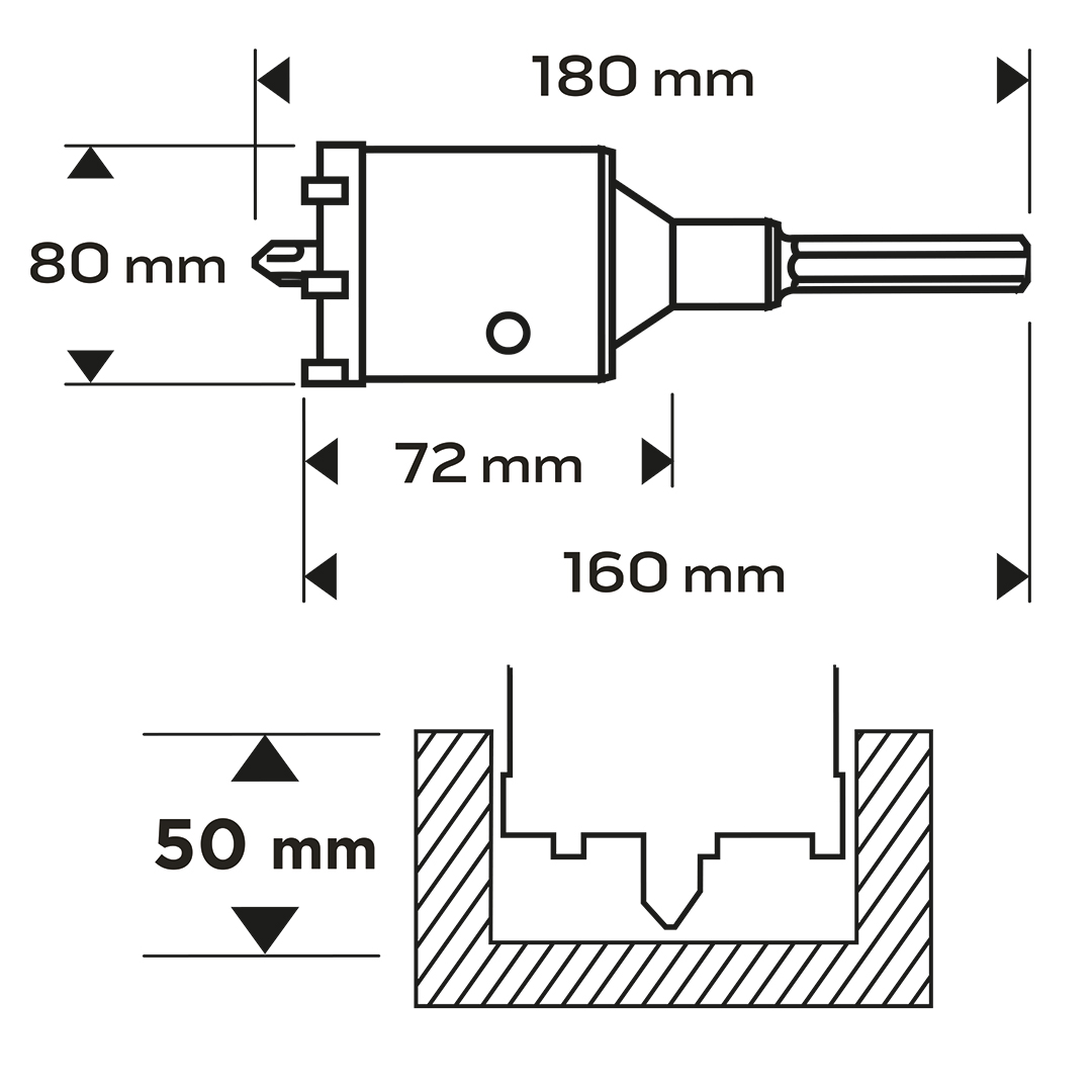 Otwornica widiowa 80 mm z adapterem HEX oraz wiertłem pilotującym