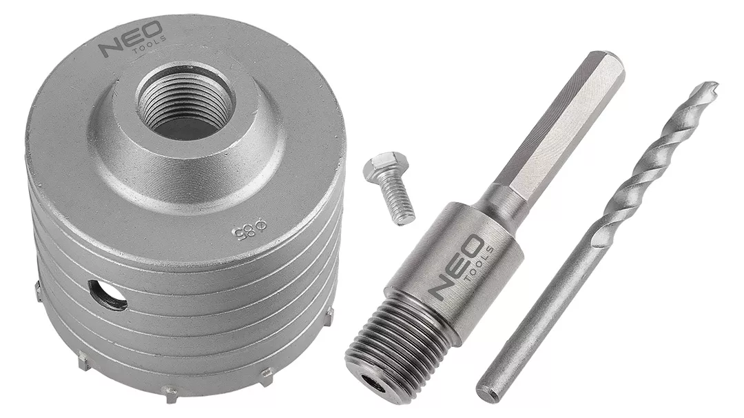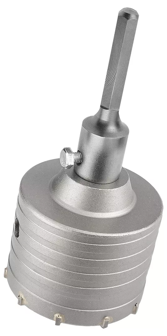 Otwornica widiowa z adapterem HEX oraz wiertłem pilotującym, średnica 85 mm, wysokość otwornicy 72mm, głębokość wiercenia 50mm, gwint M22, materiał ostrzy: TCT zastosowanie: beton, długość wiertła 110mm, średnica wiertła 8mm, adapter HEX, materiał adaptera: stal 40cr, do pracy z udarem