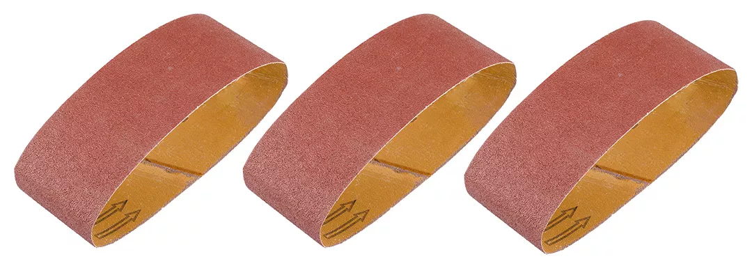 Pasy bezkońcowe, ścierne, P100, 3 sztuki, długość 457 mm, szerokość 75 mm, elektrokorund, baza z płótna typu X, nasyp półotwarty, zastosowanie: metal, drewno, tworzywo sztuczne