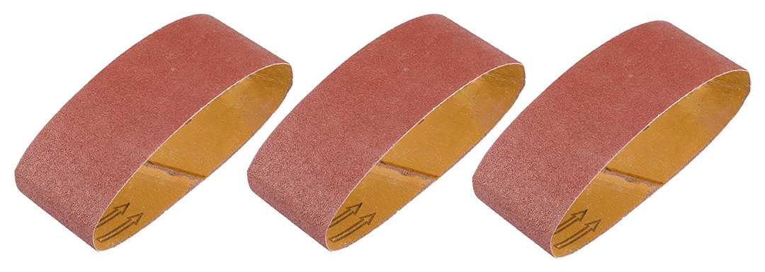 Pasy bezkońcowe, ścierne, P40, 3 sztuki, długość 533 mm, szerokość 75 mm, elektrokorund, baza z płótna typu X, nasyp półotwarty, zastosowanie: metal, drewno, tworzywo sztuczne