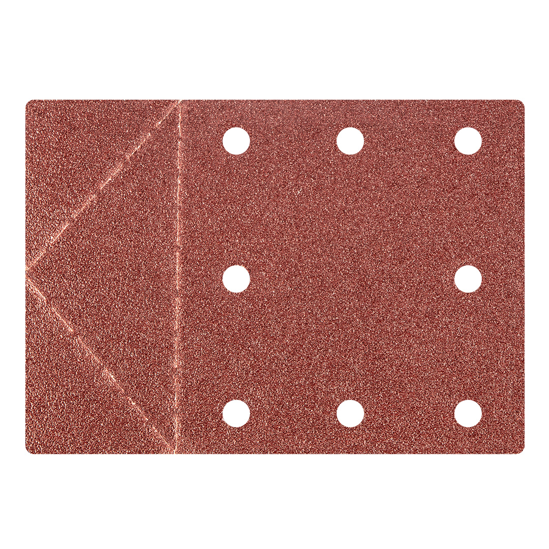 Papier ścierny na rzep, P60, 8 otworów, 3 sztuki, długość 160 mm, szerokość 115 mm, średnica otworów 8 mm, perforacja do odrywania, zastosowanie: do metalu, drewna, materiałów sztucznych