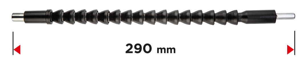 Uchwyt elastyczny do bitów 290 mm GRAPHITE (nr ref. 55H227) to magnetyczny uchwyt przeznaczony do wiertarek lub wkrętarek z końcówką w rozmiarze 1/4”. Umożliwia pracę w wąskich i trudno dostępnych miejscach. Z jego pomocą można wygodnie wkręcić śrubę pod dowolnym kątem i blisko krawędzi.