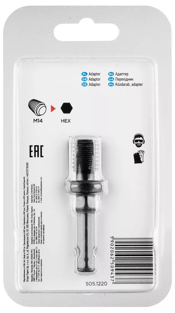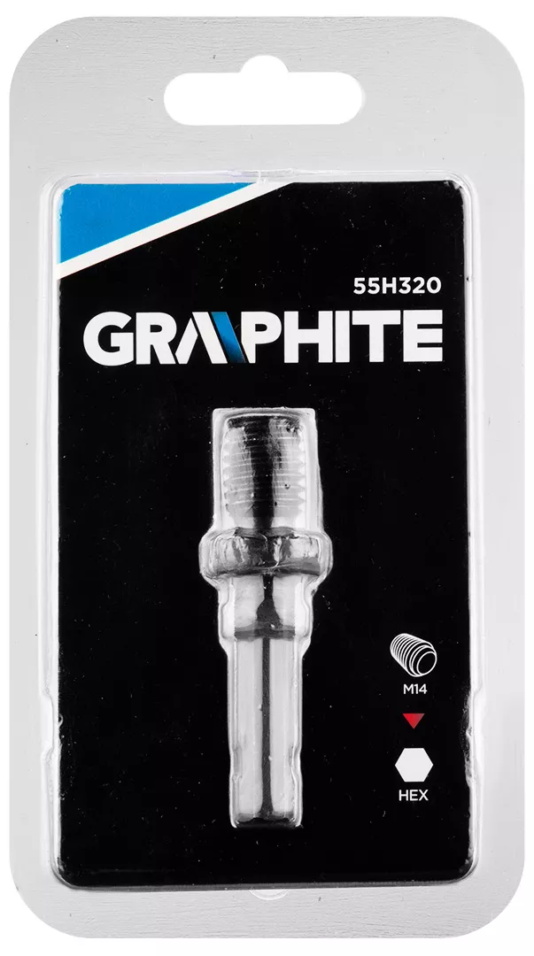 Adapter z M14 na HEX GRAPHITE (nr ref. 55H320) umożliwia zamocowania otwornicy z gwintem M14 do wiertarki.