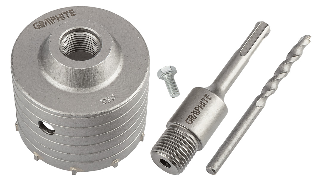 Otwornica widiowa 85 mm z adapterem SDS+ oraz wiertłem pilotującym