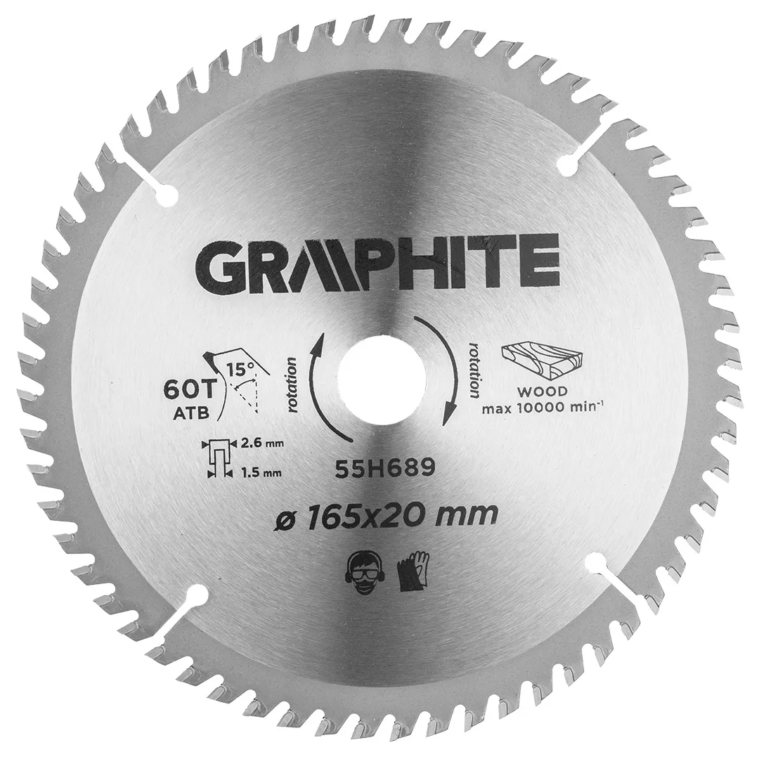 Tarcza do pilarki i zagłębiarki, widiowa GRAPHITE (nr ref. 55H689) o średnicy zewnętrznej 165 mm, wykonana ze stali specjalnej C50 o zwiększonej odporności na ścieranie oraz odkształcanie. Zęby wykonane z węglika wolframu o geometrii ATB (naprzemianległe) pozwalają na dokładne cięcie drewna i materiałów drewnopochodnych, takich jak sklejka, płyta wiórowa, MDF. Zawarte w opakowaniu pierścienie redukcyjne umożliwiają zastosowanie tarczy do większości modeli pilarek. Marka GRAPHITE oferuje szeroki asortyment elektronarzędzi spełniających wymagania profesjonalistów.