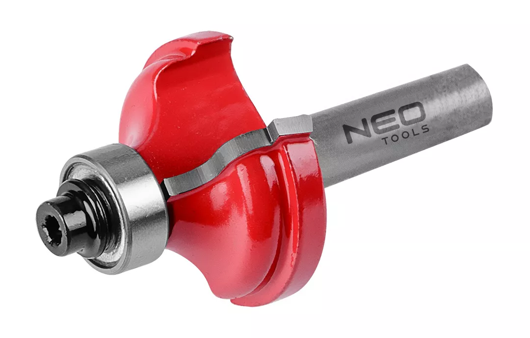 Frez kształtowy z łożyskiem, zaokrąglający, widiowy, 38,6 x 15,9 mm, trzpień 12 mm 56-229 marki NEO TOOLS to frez przeznaczony do precyzyjnej obróbki drewna, PCV oraz płyt wiórowych przy pomocy frezarek górnowrzecionowych. Jego głowica wyposażona jest w płytki skrawające wykonane z węglika spiekanego (TCT). Frez NEO TOOLS posiada łożysko, które ułatwia prowadzenie frezarki wzdłuż materiału. Z kolei trzpień o średnicy 12 mm umożliwia zastosowanie frezu w wielu popularnych modelach frezarek.