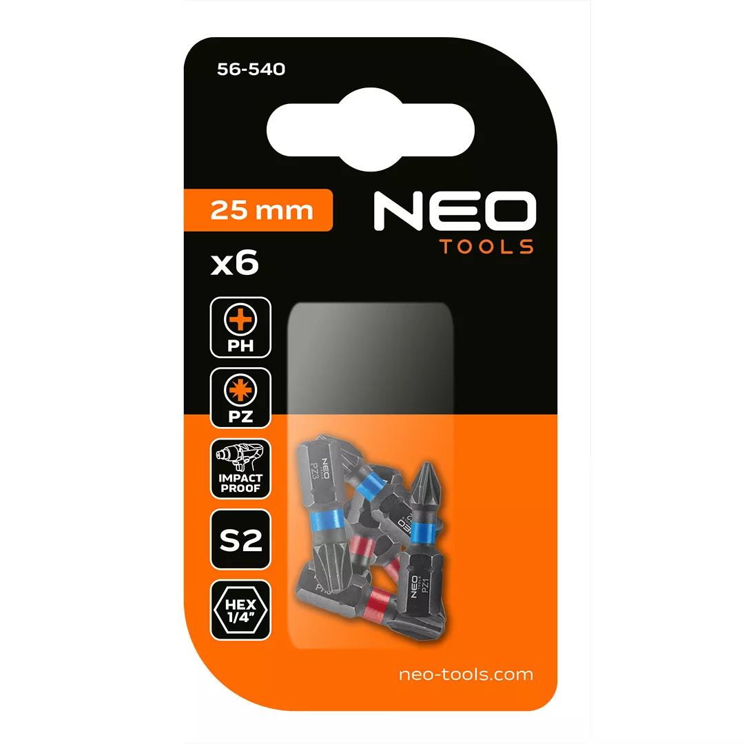 Bity udarowe PH1/2/3, PZ1/2/3 x 25 mm, 6 szt.